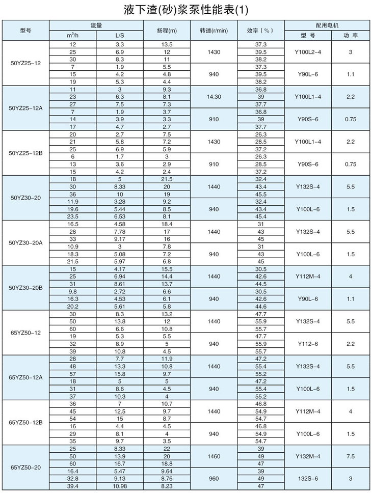 過流部件:該系列泵為立式渣漿泵,浸入液下工作。該型泵泵體為耐磨金屬,葉輪選用耐磨金屬或橡膠、聚胺脂等材料制造。適用于輸送磨蝕性,腐蝕性渣漿。